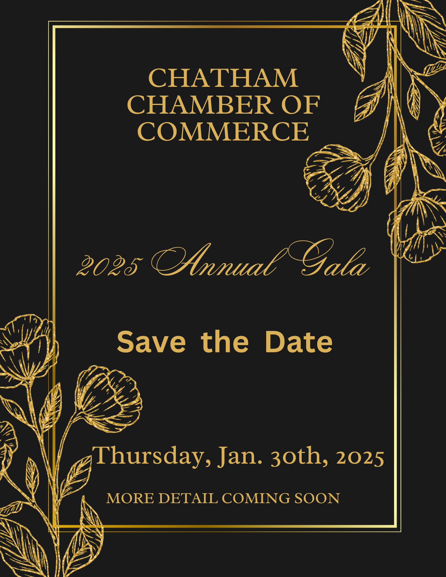 Agenda Highlights: Cocktails & networking, awards, a delicious dinner and entertainment. We value your presence and input as an integral part of The Chatham Chamber. Your support has been instrumental in our success, and we are eager to embark on this exciting journey in the new year together. Register today! Sponsorship opportunities are available! Reach out to Cheryl Littleton to learn more about promoting your business and supporting our work. Guests include 100 + senior business and community leaders.